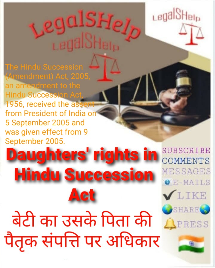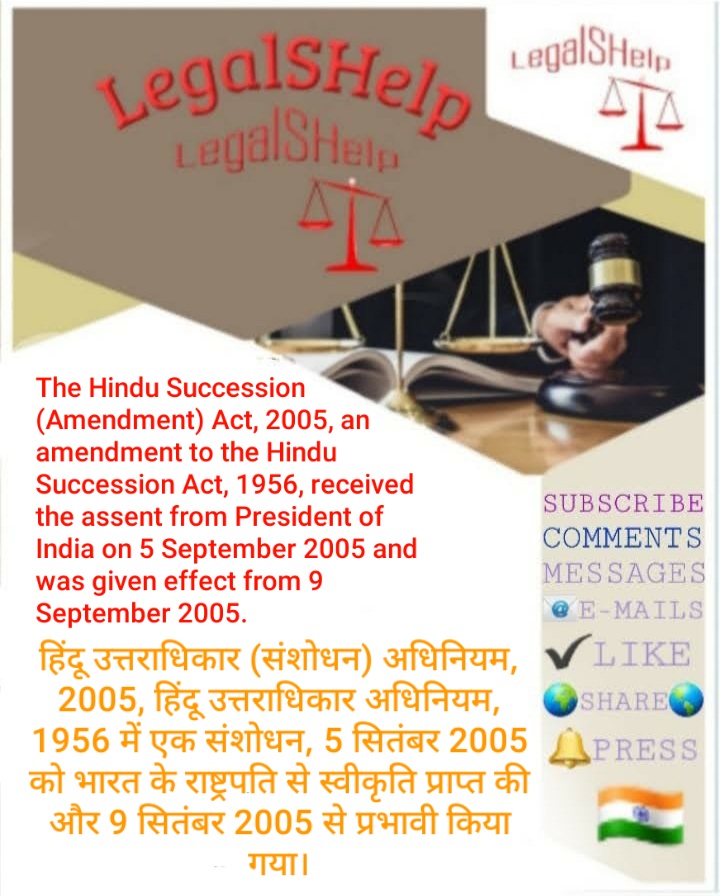 The Hindu Succession (Amendment) Act , 2005, an amendment to the Hindu Succession Act, 1956, received the assent from President of India on 5 September 2005 and was given effect from 9 September 2005.