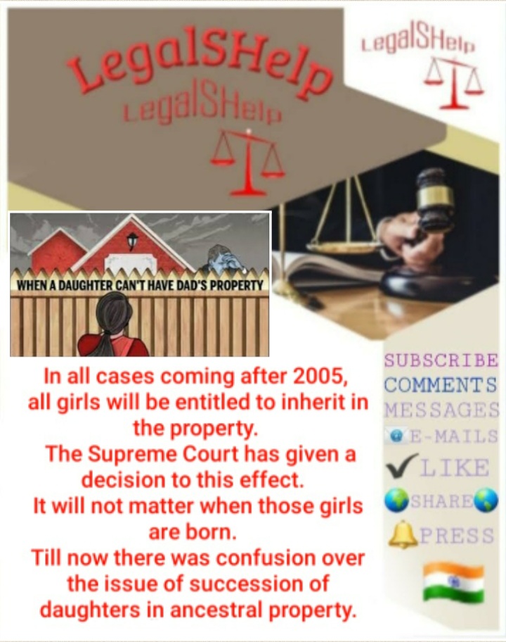 In all cases coming after 2005, all girls will be entitled to inherit in the property. The Supreme Court has given a decision to this effect. It will not matter when those girls are born. Till now there was confusion over the issue of succession of daughters in ancestral property.