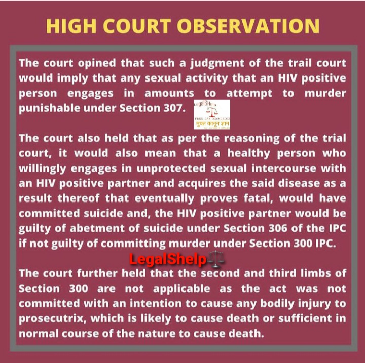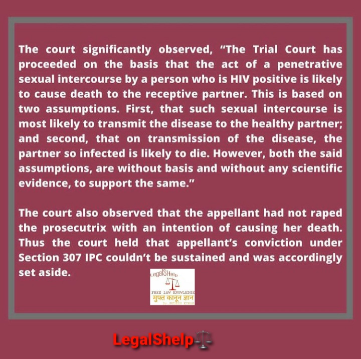 DOES RAPE BY HIV+AMOUNT TO ATTEMPT TO MURDER? Written by LegalSHelp⚖मुफ्त कानून ज्ञान FREE LAW KNOWLEDGE(SUDESH KUMAR) PAGE 1 Page 2 Page 3 Page 4 Page 5 Page 6 Page 7 Share this: Click to share on X (Opens in new window) X Click to share on Facebook (Opens in new window) Facebook Click to print (Opens in new window) Print Click to share on Telegram (Opens in new window) Telegram Click to share on WhatsApp (Opens in new window) WhatsApp Click to email a link to a friend (Opens in new window) Email Like Loading... Related Leave a comment Cancel reply Δ